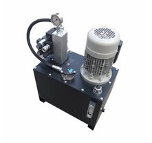 Гидростанция с гидравлическим цилиндром или несколькими цилиндрами – это комплект, состоящий из гидравлической насосной станции, рукавов высокого давления, элементов управления и распределения потока рабочей жидкости и исполнительного механизма с рабочим усилием до 200 тонн с ходом до 5 метров. Гидроцилиндр используется для совершения механической работы в виде прямолинейного перемещения нагрузки. Гидроцилиндр может создавать тяговое и толкающее усилие на штоке. Скорость перемещения штока определяется скоростью подачи гидростанции. Гидравлическая станция расчитана для подачи рабочей жидкости со скоростью от 1,6 до 50 л/мин, под давлением от 160 до 700 бар, емкость бака выбирается из диапазона от 10 до 250 литров в зависимости от объема и количества цилиндров.
