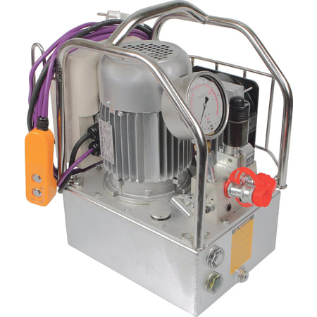 Гидростанции 220 вольт – это наиболее универсальное оборудование, с приводом от электромотора мощностью до 2,2 кВт, который подключается к общепромышленной однофазной электросети. Станции могут обеспечивать работу оборудования небольшой мощности: вспомогательные прессы, съемники, домкраты грузоподъемностью от 5 до 200 тонн, трубогибы, режущий, монтажный и заклепочный инструмент, оборудование для работы с токоведущими шинами, гайковерты и гидравлические ключи, мультиплекаторы давления и др. Для управления потоком используются ручные и электромагнитные гидрораспределители, для автоматизации - микроконтроллеры.