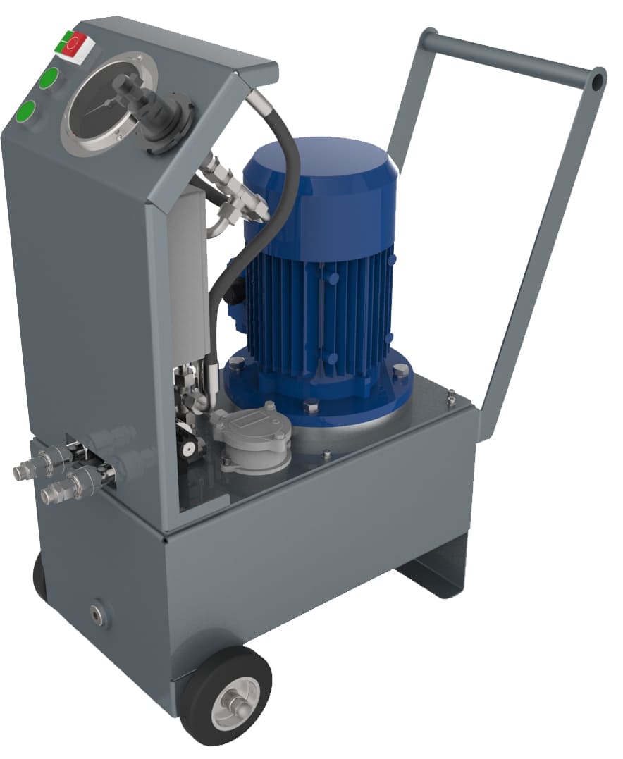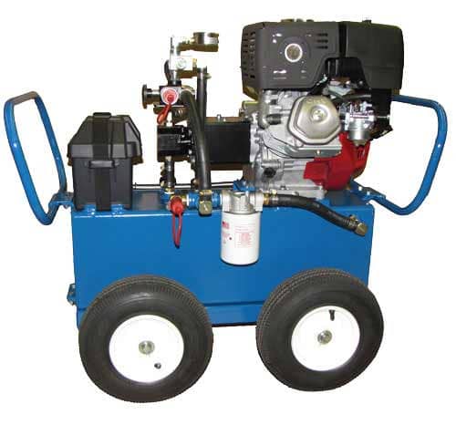 Мобильные гидростанции изготавливаются в защитном каркасе на колесах для удобства эксплуатации на строительных площадках под открытым небом без ровного покрытия. Применяются для проведения стоительно-дорожных, аварийных и спасательных работ. Станции предназначены для работы: отбойных молотков, забивщиков опор, дисковых пил, сваескусывателей, гидравлических шламовых помп, врезок в магистральные трубопроводы, для динамического инструмента. Привод - бензиновые, дизельные и электрические моторы. Подача жидкости до 55 л/мин, до 200 бар, объем бака 40 литров с охлаждением рабочей жидкости на сливе.