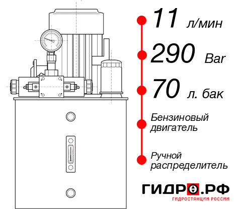 Гидростанция НБР-11И297Т с давлением 290 бар и потоком 11 л/м. Установлен бензиновый привод и гидравлический бак на 70 л. Распределитель гидравлический ручной. Цена с доставкой до Вашего цеха в Челябинске 171198 руб. Рекомендуемая комплетация: цифровой управляющий манометр, радиоуправление, резьбовой порт дренажный, установка кранов на выходе.