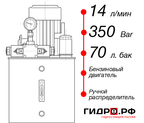 Гидростанция НБР-14И357Т с подачей 14 л/мин и давлением 350 атм. В конструкции используется гидробак на 70 л и бензиновый двигатель. Распределитель гидравлического потока ручной. Срок изготовления до 2 дней. Прайсовая цена с доставкой до адреса в Челябинске 250972 руб. Рекомендуемые варианты дооснащения: система контроля циклов, электрошкаф, электрический датчик давления 4-2ма, регулятор потока, датчик давления.