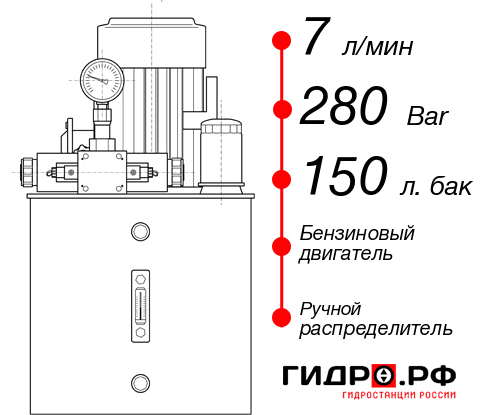 Маслостанция НБР-7И2815Т с давлением 280 бар и гидравлическим контуром 7 литров в минуту. Установлен бак на 150 л и бензиновый мотор. Цена по прайсу с доставкой до адреса в Челябинске 181447 руб. Рекомендуемая комплетация: дополнительные краны на выходе, гидрозамок на выходных портах, контроль давления в выходных магистралях, вспомогательный ручной насос, обратный клапан на выходе.