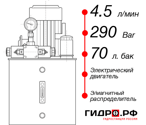 Маслостанция НЭЭ-4,5И297Т с давлением 290 атм и подачей 4.5 л/мин. Установлен масляный бак на 70 литров и электрический силовой агрегат. Распределитель э/магнитный. Срок производства до 1 дней. Цена с доставкой до Вашего цеха в Челябинске 94027 руб. Рекомендуем дооснастить: клапан обратный.