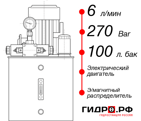 Гидростанция НЭЭ-6И2710Т с подачей 6 литров в минуту и давлением 270 бар. В конструкции применён электрический привод и масляный бак на 100 литров. Стоимость с доставкой до Вашего производства в Челябинске 105256 руб. Популярные дополнительные опции: контроль загрязнения фильтра.